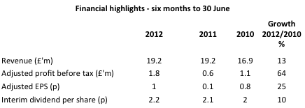 - Interim dividend up 5% to 2.2p (2011: 2.1p)